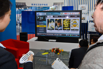 2010年11月19日第五屆文博會上,一位參觀的觀眾向展臺工作人員詢問高清機頂盒的點播功能。借助三網(wǎng)融合、IPTV等技術(shù),電視觀眾將改變以往被動接受的收視習(xí)慣,進入到想看什么點什么的互動點播時代。記者