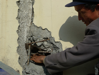 村民們一直擔(dān)心,質(zhì)量有問(wèn)題的房子住了很難保證安全,“如果再發(fā)生地震,這樣的房子能挺住嗎?”村民現(xiàn)場(chǎng)為記者砸開(kāi)墻體,發(fā)現(xiàn)磚與磚之間很多處根本沒(méi)有澆注砂石和水泥。