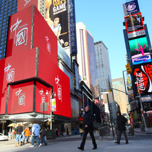 1月17日,美國紐約時報廣場的電子顯示屏正在播出《中國國家形象片——人物篇》。 當日,由中國國務(wù)院新聞辦籌拍的《中國國家形象片——人物篇》在紐約時報廣場大型電子顯示屏上播出,中國各領(lǐng)域杰出代表和普通百姓在片中逐一亮相,讓美國觀眾了解一個更直觀更立體的中國國家新形象。