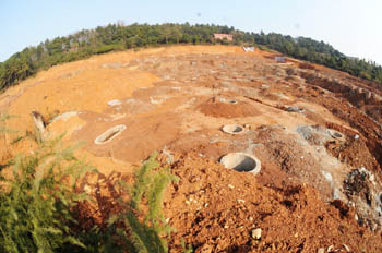 湖南省森林植物園為修建商品房被毀的山林。新華社記者/攝 |
