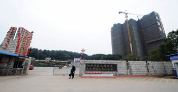 記者日前來到位于長沙市東南方向的湖南省森林植物園西門口。進門右邊數(shù)百米的地方,只見一幢高樓拔地而起,在后面郁郁蔥蔥的山坡的襯托下,顯得十分扎眼。園內(nèi)左行數(shù)十米遠處,就是這一房地產(chǎn)項目的售樓部。