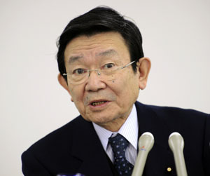 日本經(jīng)濟財政大臣與謝野馨(中)14日在記者招待會上談及日本2010年名義GDP低于中國時表示,不要爭經(jīng)濟的排列順序,中國的經(jīng)濟崛起對鄰國日本來說令人高興。法新社 |