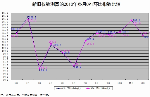 一是利用2011年新的權(quán)數(shù)構(gòu)成和2010年已發(fā)布的CPI八大類別價格指數(shù),對2010年各月的環(huán)比和同比價格總指數(shù)分別進(jìn)行了測算,測算結(jié)果與已發(fā)布的價格總指數(shù)基本一致,誤差較小,銜接較好(詳見附圖)。