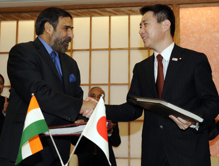 日本外務(wù)大臣前原誠司與到訪的印度商業(yè)和工業(yè)部長阿南德·夏爾馬分別代表兩國政府簽署了協(xié)定。兩國政要用“美妙”、“具有歷史性”等詞句評價(jià)此次簽署的協(xié)議。前原表示,希望以此為契機(jī),使兩國的戰(zhàn)略伙伴關(guān)系得到進(jìn)一步發(fā)展。夏爾馬表示,正處于快速增長期的印度期待日本企業(yè)的進(jìn)駐。