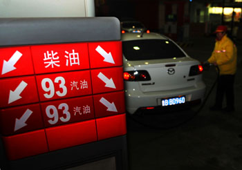 2月20日零時起,全國汽柴油出廠價格每噸上調350元,全國平均93號汽油和0號柴油每升分別提高0.28元和0.30元。本報記者 李紫恒/攝 |