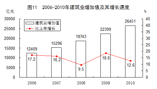 全年全社會建筑業(yè)增加值26451億元,比上年增長12.6%。全國具有資質等級的總承包和專業(yè)承包建筑業(yè)企業(yè)實現利潤3422億元,增長25.9%,其中國有及國有控股企業(yè)990億元,增長35.0%。
