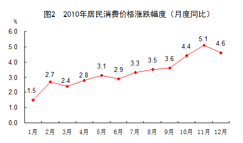 居民消費價格一季度同比上漲2.2%,二季度上漲2.9%,三季度上漲3.5%,四季度上漲4.7%,全年平均比上年上漲3.3%,其中食品價格上漲7.2%。固定資產投資價格上漲3.6%。工業(yè)品出廠價格上漲5.5%。原材料、燃料、動力購進價格上漲9.6%。農產品生產價格上漲10.9%。