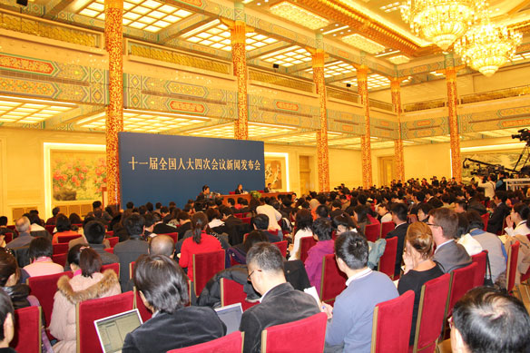 十一屆全國人大四次會議新聞發(fā)布會全景,大會發(fā)言人李肇星就會議議程和人大工作相關(guān)問題回答中外記者提問