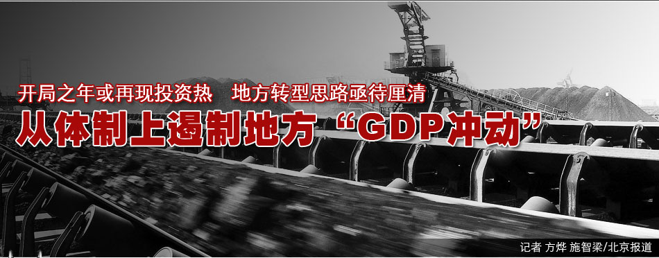 溫家寶總理在政府工作報(bào)告中明確指出,今后五年,我國經(jīng)濟(jì)增長預(yù)期目標(biāo)是在明顯提高質(zhì)量和效益的基礎(chǔ)上年均增長7%。出席兩會(huì)的代表和委員表示,這是中央政府站在轉(zhuǎn)變發(fā)展方式的角度提出的理性而科學(xué)的發(fā)展目標(biāo)。 “但值得警惕的是,一些地方政府的發(fā)展思路尚未從根本上轉(zhuǎn)變!辈糠执砦瘑T告訴《經(jīng)濟(jì)參考報(bào)》記者,不少地方都制定了兩位數(shù)的經(jīng)濟(jì)增長目標(biāo),出臺(tái)了規(guī)模龐大的投資規(guī)劃。為保證經(jīng)濟(jì)健康穩(wěn)定增長,中央有必要從體制上遏制地方的“GDP沖動(dòng)”。
