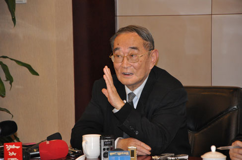 厲以寧11日在鐵道大廈記者會(huì)上表示,宏觀經(jīng)濟(jì)政策不能一味緊縮,緊縮要適可而止。王濤/攝