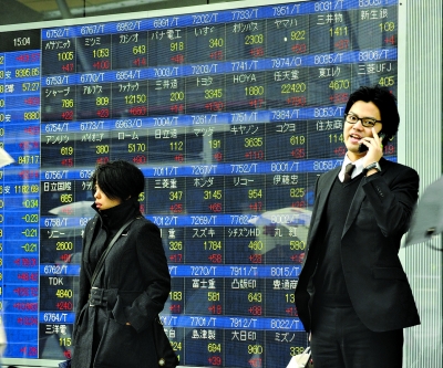 圖為東京股票電子牌前的行人。(法新/圖)