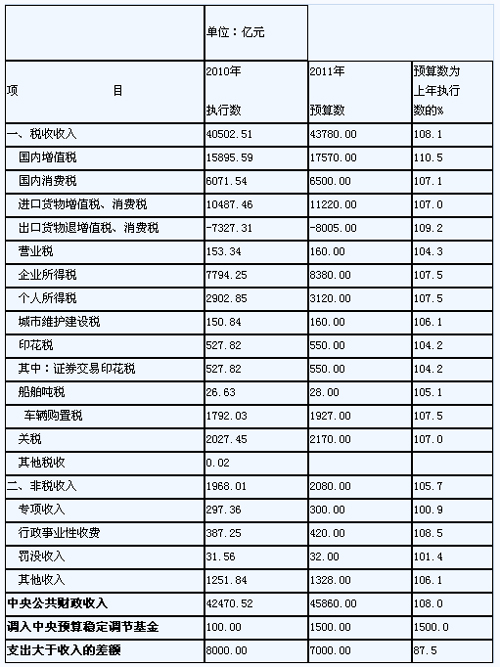 關(guān)于2011年中央公共財政收入預算的說明