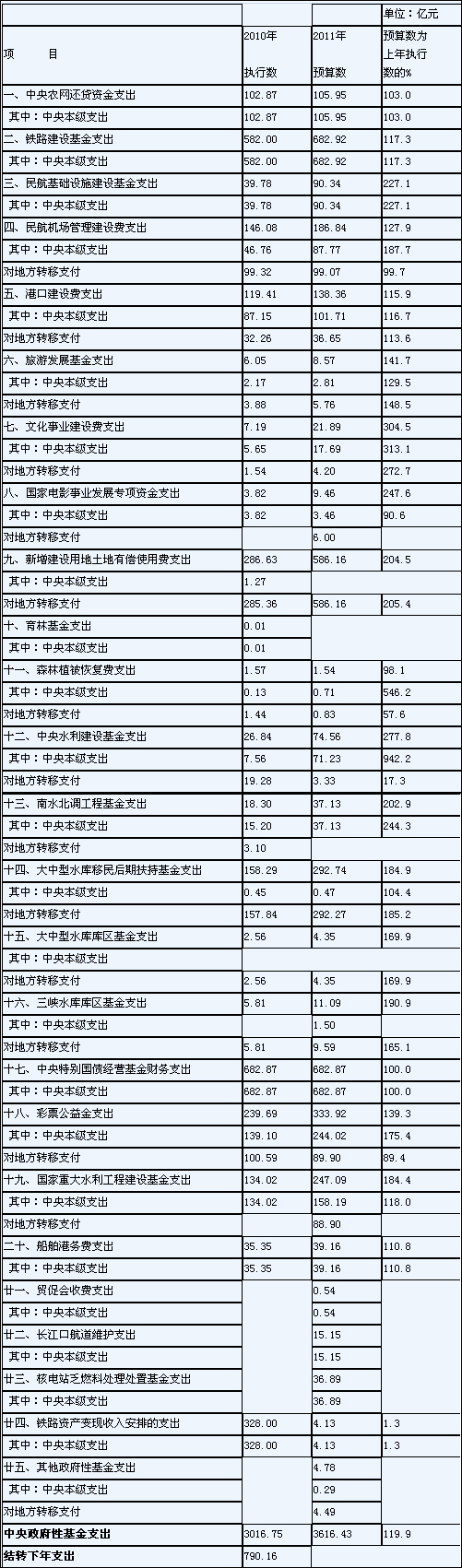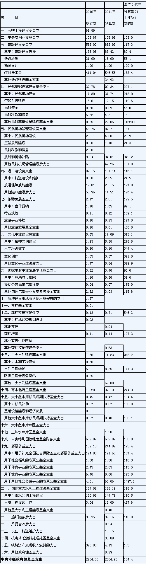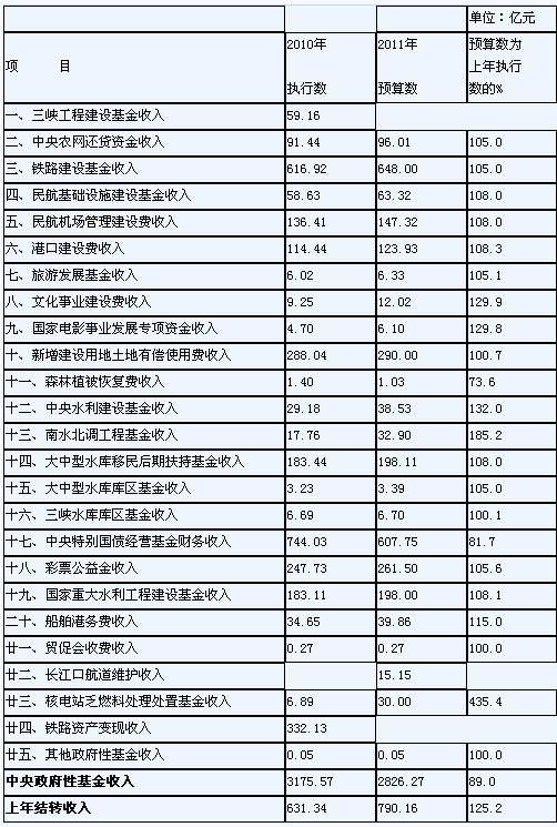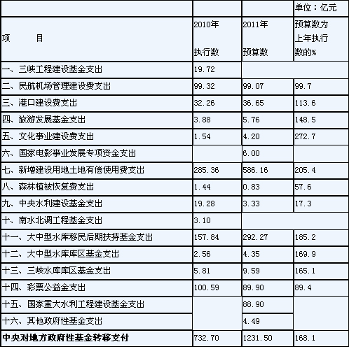 關(guān)于2011年中央政府性基金收支預(yù)算的說明
