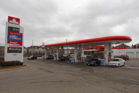 這是4月4日在加拿大多倫多拍攝的一家加油站的油價標牌(左),當日最低標號汽油每公升1.295加元,與去年同期相比上漲了約27%。 日前,加拿大物價水平漲幅明顯,除汽油價格升至兩年多來的最高值之外,水果、蔬菜等食品的價格也都紛紛上漲。新華社發(fā)