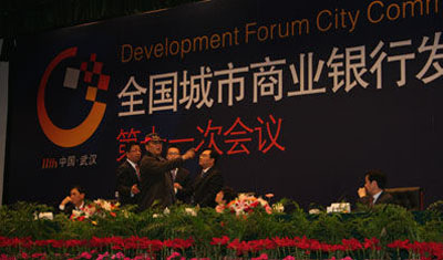 在東湖賓館梅嶺禮堂內(nèi),以“嚴(yán)守風(fēng)險底線,堅持科學(xué)發(fā)展”為主題的全國城商行第十一次發(fā)展論壇大會正在召開。該會由中國銀監(jiān)會主辦漢口銀行承辦,參會代表悉數(shù)來自銀監(jiān)會、各省銀監(jiān)局和全國147家城商行的高管。