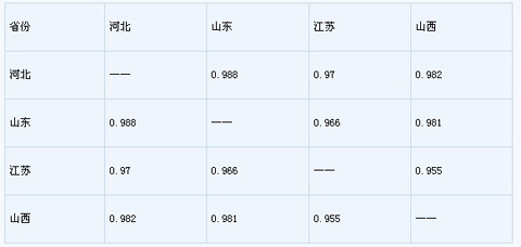 表4 各交割地點所在省份焦炭價格相關(guān)性