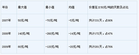 (2)山西廠庫相對于基準交割地的廠庫和倉庫貼水200元/噸 第一,山西在我國焦炭貿(mào)易中屬于凈流出方,本地交通不便,適當設(shè)置貼水可以防止貿(mào)易逆流。 山西雖然產(chǎn)焦多,但本地消化能力弱,每年焦炭產(chǎn)量的78%需要外運到山東、天津、河北、江蘇等地進行消化。其中,通過鐵路方式出省的占51%,汽車運輸占49%。鐵路運力緊張一直是山西省面臨的難題,而汽運也受到山西地理條件的影響。山西省山地、丘陵多、平原少,東依太行山,西靠中條山,并與呂梁、太岳等山脈互為犄角。近年來,雖然山西的公路、鐵路設(shè)施和條件得到較大改善,為焦炭和煤炭的外運提供了有效保障,但是目前尚不具備發(fā)生大規(guī)模交割的條件。由于山西本身處于焦炭貿(mào)易流向的流出方,通過對山西地區(qū)適當貼水,可以避免山西境外焦炭流入山西,防止出現(xiàn)貿(mào)易逆流現(xiàn)象和大規(guī)模交割情況,有效防范交割風險。 第二,相對于基準交割地貼水200元/噸比較適宜。 從山西與基準交割地的價差情況來看,2008年前,河北、山東的焦炭價格要高于山西200元/噸左右,但金融危機之后,一是受鋼鐵工業(yè)焦炭需求疲軟影響,同時山西省的鐵路和公路運輸效率也大幅提高,使山西與山東、河北之間的價差有縮小的趨勢。根據(jù)2009年1-9月數(shù)據(jù),河北的焦炭價格比山西的平均高約90元/噸,山東比山西平均高約50元/噸左右,基本反映了地區(qū)間的運輸成本。 注:河北、山東、山西價格分別取自唐山、濰坊和運城 從山西到基準地之間的運輸綜合費用情況來看,山西到天津、唐山的鐵路運費約為90元/噸左右,到連云港的鐵路運費約為105元/噸,山西到兩地的汽車運費在150元/噸左右,見表5。加上請車費等其他費用后,鐵路運輸費用與公路運輸費用基本接近。這樣,運輸加上雜項的綜合費用最高接近200元/噸。