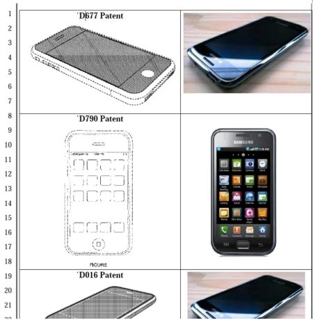 蘋果在訴狀中將自己的專利與三星手機進行對比 |