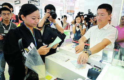 海南省離島旅客免稅購物政策試點(diǎn)4月20日正式實(shí)施。 離島免稅政策是指對乘飛機(jī)離島(不包括離境)旅客實(shí)行限次、限值、限量和限品種免進(jìn)口稅購物,在實(shí)施離島免稅政策的免稅商店內(nèi)付款,在機(jī)場隔離區(qū)提貨離島的稅收優(yōu)惠政策。 圖為4月19日,三亞免稅商店的工作人員正在演示離島免稅購物流程!