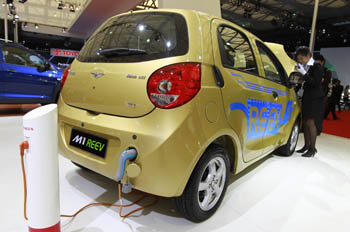 本屆車展上亮相的奇瑞電動微型車——M1REEV。記者