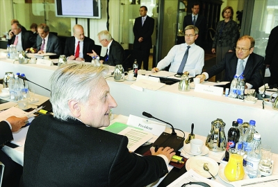 圖為:歐洲央行行長特里謝在發(fā)言。