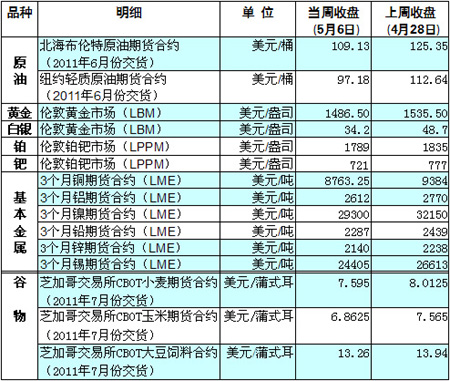 國(guó)際大宗商品期貨價(jià)格明細(xì)表[2011-05-09]