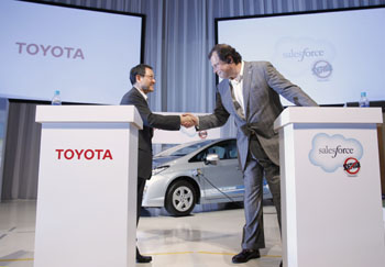 當(dāng)日,日本豐田汽車(chē)公司和美國(guó)Salesforce.com網(wǎng)站在東京召開(kāi)新聞發(fā)布會(huì),宣布將建立一個(gè)面向豐田消費(fèi)者的私人社交網(wǎng)站“豐田之友”,該網(wǎng)站將與即將上市的豐田電動(dòng)車(chē)及插入式混合動(dòng)力車(chē)同時(shí)發(fā)布。