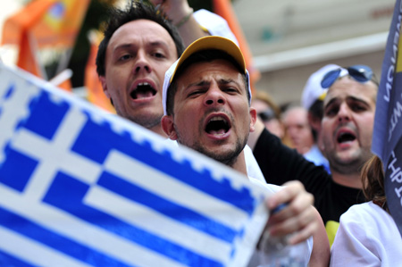 日前,希臘政府提出新的財(cái)政緊縮措施,并計(jì)劃加快500億歐元的私有化進(jìn)程,以力爭(zhēng)實(shí)現(xiàn)2011年的減赤目標(biāo),從而順利獲得歐盟和IMF的援助貸款。但這些計(jì)劃遭到反對(duì)黨強(qiáng)烈抵制。帕潘德里歐警告說(shuō),如果不能盡快拿到貸款,希臘極可能走向破產(chǎn)。