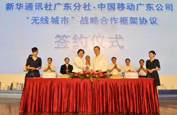 論壇當(dāng)日,廣東省經(jīng)信委與廣東移動簽署了“無線城市”戰(zhàn)略合作框架協(xié)議。為貫徹落實新華社總社與中國移動通信集團(tuán)公司的戰(zhàn)略合作精神,新華社廣東分社與廣東移動也同期簽署了戰(zhàn)略合作協(xié)議,各方表示將進(jìn)一步合力推進(jìn)廣東“無線城市群”建設(shè)。與此同時,廣東移動“無線城市”也于當(dāng)日正式發(fā)布。據(jù)悉,廣東移動的“無線城市”覆蓋全省,業(yè)務(wù)類別涵蓋無線政務(wù)、便民服務(wù)、商家優(yōu)惠、掌上娛樂、企業(yè)應(yīng)用、旅游資訊和時事新聞等多個領(lǐng)域,在試運營階段就已經(jīng)吸引了社會各界的關(guān)注與體驗,今年前5個月累計訪問量已突破2000萬人次。
