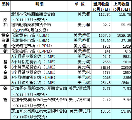 國際大宗商品期貨價格明細表[2011-06-20]