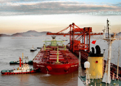 2003年10月31日,“鳳凰·伯爵”號停泊在寧波港北侖港區(qū)。當日下午,特大型礦船“鳳凰·伯爵”號裝載著28萬多噸進口鐵礦,在4艘大馬力拖輪的幫助下,穩(wěn)穩(wěn)地靠上了寧波港北侖港區(qū)20萬噸級礦石中轉(zhuǎn)碼頭。北侖港由此創(chuàng)下了我國大陸港口靠泊船體最大的散貨船和單船最大裝載量兩項紀錄。新華社發(fā) |