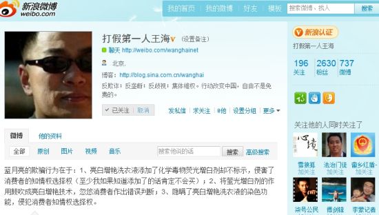 “中國(guó)打假第一人”王海近日在微博上指出(附:王海微博),由楊瀾代言的藍(lán)月亮洗衣液被檢測(cè)出含有致癌物質(zhì)熒光增白劑,并且出具了相關(guān)的檢測(cè)報(bào)告,引起了網(wǎng)友的極大關(guān)注。 昨日(6月23日),廣州藍(lán)月亮實(shí)業(yè)有限公司副總經(jīng)理鄧崗對(duì)《每日經(jīng)濟(jì)新聞》表示,國(guó)家的《QB/T2953-2008洗滌劑用熒光增白劑》的行業(yè)標(biāo)準(zhǔn)允許在洗滌劑中添加兩類熒光增白劑,而且美國(guó)、日本和歐盟等地都允許在衣物洗滌劑中使用。 中國(guó)洗滌用品工業(yè)協(xié)會(huì)針對(duì)此事發(fā)表的特別說(shuō)明稱,行業(yè)標(biāo)準(zhǔn)所規(guī)定使用的熒光增白劑安全可靠,不會(huì)對(duì)人體和環(huán)境造成負(fù)面影響,同時(shí)可以改善和提高洗滌效果。