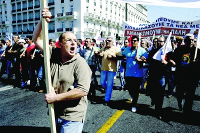 為應(yīng)對債務(wù)危機(jī),希臘議會28日開始就政府提出的新財政緊縮方案進(jìn)行討論,將于29日進(jìn)行最后表決。為反對這一政策通過,希臘工會于28日起展開48小時的全國大罷工并在首都雅典舉行大規(guī)模示威。