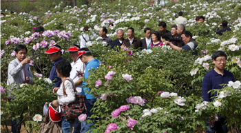 游客在洛陽牡丹園內(nèi)欣賞大田牡丹花。新華社發(fā) |
