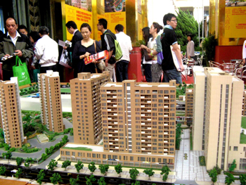 市民在上海房展會上觀看樓盤模型(2011年4月30日攝)。國務(wù)院總理溫家寶日前主持召開國務(wù)院常務(wù)會議,分析當前房地產(chǎn)市場形勢,指出要嚴格實施差別化住房信貸、稅收政策和住房限購措施,遏制投機投資性購房,合理引導(dǎo)住房需求。已實施住房限購措施的城市要繼續(xù)嚴格執(zhí)行相關(guān)政策,房價上漲過快的二三線城市也要采取必要的限購措施。新華社發(fā) |
