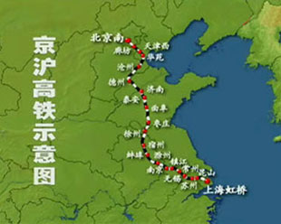 京滬高速鐵路于2008年4月18日開工,從北京南站出發(fā)終止于上海虹橋站,總長度1318公里,總投資約2209億元。全線縱貫北京、天津、上海三大直轄市和河北、山東、安徽、江蘇四省,是新中國成立以來一次建設(shè)里程最長、投資最大、標(biāo)準(zhǔn)最高的高速鐵路。2010年11月15日鋪軌完成。2011年6月30日,京滬高鐵正式開通運(yùn)營。 | |