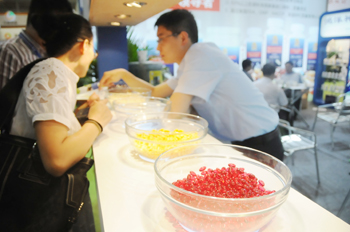 第46屆全國新特藥品交易會暨2011中國藥店展覽在南京開幕,來自全國40多家企業(yè)的100多個2008年后獲批的新藥齊聚南京。圖為交易會現(xiàn)場參展藥商展出的新藥。新華社發(fā)