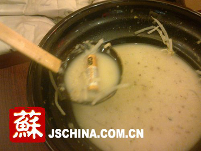 昨晚,賈女士和她老公在南京河西萬達廣場的“味千拉面”就餐。當二人快要就餐完畢的時候,賈女士在“味千拉面”的碗里發(fā)現(xiàn)了一節(jié)7號電池。電池由于長時間沸煮,外皮已經(jīng)開翹。賈女士當即找“味千拉面”店員理論,其中一名店員竟說:“小姐,其實也沒什么的,這個電池肯定是面煮好后掉進去的,不會跟著面一起煮的,所以問題不大,不會生病的!彪S后賈女士繼續(xù)找店長理論,最后“味千拉面”河西萬達店長和其公共事務(wù)部的一個負責人叫賈女士先去醫(yī)院檢查,等檢查結(jié)果出來后,再商量隨后的賠償事宜。 電池屬于強腐蝕性物質(zhì),一節(jié)1號電池爛在地里,能使1平方米的土壤永久失去利用價值;一粒紐扣電池可使600噸水受到污染,有毒物質(zhì)還會進入人體內(nèi)損壞神經(jīng)系統(tǒng)等,甚至可以致癌。此次“味千拉面電池門”事件,本網(wǎng)還將繼續(xù)關(guān)注。