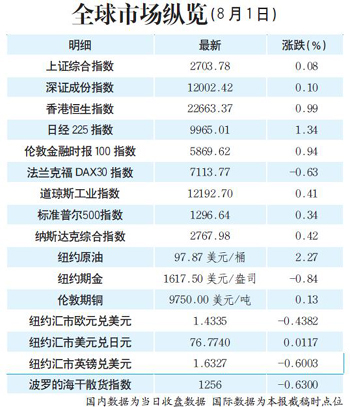 全球市場縱覽(8月1日)