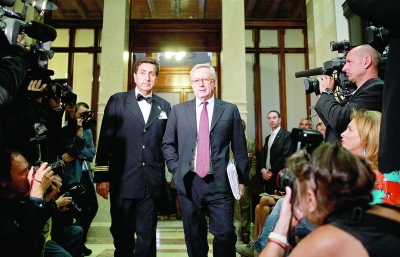 特雷蒙蒂列出了可能實施的舉措,包括將地方服務(wù)自由化、上調(diào)私營部門女性員工的退休年齡、削減公共部門工資,而且將非宗教節(jié)日調(diào)至周日以增加生產(chǎn)力。受此消息提振,意大利股市盤中漲幅逾4%。圖為特雷蒙蒂(右)11日正在進入羅馬議會大廳。