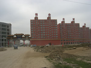 保全莊項(xiàng)目由15萬平方米蔬菜交易市場(chǎng)以及15萬平方米產(chǎn)權(quán)商鋪、住宅、公寓、商務(wù)寫字樓組成。2008年上半年,該項(xiàng)目高調(diào)亮相,一度被捧為內(nèi)蒙古商業(yè)地產(chǎn)投資領(lǐng)域的“黑馬”!督(jīng)濟(jì)參考報(bào)》記者8月24日在現(xiàn)場(chǎng)看到,項(xiàng)目主體工程已基本完工,七個(gè)交易大廳被13幢商住樓、5棟商鋪圍成一圈。據(jù)相關(guān)人士介紹,該項(xiàng)目原來規(guī)劃建設(shè)冷鮮庫、深加工車間、倉庫、物流配送中心、農(nóng)藥殘留檢測(cè)中心等配套設(shè)施,如今開發(fā)商已無力再投資建設(shè),交易市場(chǎng)徒有一個(gè)“空殼子”,成了半拉子工程。