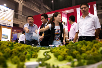 9月15日,參觀者在房展會(huì)上咨詢。 當(dāng)日,2011北京秋季房地產(chǎn)展示交易會(huì)開(kāi)幕。受限購(gòu)政策影響,加之開(kāi)發(fā)商降價(jià)幅度較小,購(gòu)房者在選擇時(shí)觀望態(tài)度明顯。新華社發(fā)(白禹攝) |