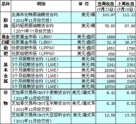 國際大宗商品期貨價(jià)格明細(xì)表[2011-09-26]
