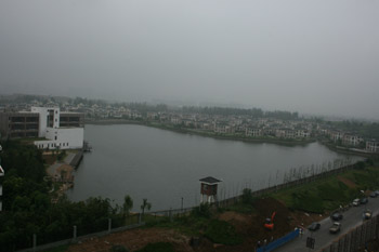 在知情人的帶領(lǐng)下,記者驅(qū)車進入這個小區(qū)發(fā)現(xiàn),主干道兩旁花木扶疏,偶爾會發(fā)現(xiàn)一兩株名貴的樹種。連接著主干道,有各式小路曲徑通幽。穿過兩幢獨立別墅,一片碩大的湖泊展現(xiàn)在記者面前,足足有百余個足球場那么大。記者正欲拍照,一位物業(yè)人員便跑上來嚴(yán)厲喝止。
