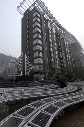作為國(guó)家首批可再生能源建筑應(yīng)用示范項(xiàng)目,蔚來(lái)城是一個(gè)太陽(yáng)能多元利用的高檔生活園區(qū),內(nèi)部的生活熱水將全部采用太陽(yáng)能,園區(qū)內(nèi)制冷、制熱以及垃圾處理、雨洪收集、生態(tài)污水處理、照明等設(shè)施用電,也將全部使用太陽(yáng)能光伏電供應(yīng)。此外,太陽(yáng)能還將與地?zé)岬饶茉醇盁o(wú)動(dòng)力空氣微循環(huán)系統(tǒng)組合使用,使整個(gè)小區(qū)實(shí)現(xiàn)零污染、零排放。
