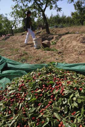 2011年國慶節(jié)期間,山東德州樂陵百萬畝金絲小棗又獲得大豐收。圖為山東德州樂陵朱集鎮(zhèn),棗農(nóng)們把鮮紅的小棗晾曬在田間地頭。新華社發(fā)(詹敏