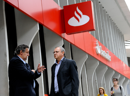 10月18日,人們?cè)诎臀骼锛s熱內(nèi)盧一家銀行外交談。 當(dāng)日,持續(xù)21天的巴西銀行業(yè)大罷工宣告結(jié)束。經(jīng)與工會(huì)的反復(fù)談判,全國銀行聯(lián)合會(huì)同意將銀行員工的工資提高9%。
