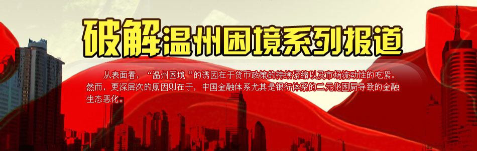 近日,浙江銀監(jiān)局已經(jīng)開始了針對溫州等地小企業(yè)債務危機的省內(nèi)部署工作。浙江省銀監(jiān)局相關人士對《經(jīng)濟參考報》記者表示,“監(jiān)管部門已經(jīng)要求銀行對產(chǎn)品有市場、前景好、經(jīng)營管理較規(guī)范但出現(xiàn)暫時性困難的可轉型企業(yè),實行名單制幫扶;還要求銀行對小企業(yè)加大貸款力度,包括不抽貸、壓貸;另外,對暫時出現(xiàn)風險的企業(yè),政府也將采取相應措施解決問題。” 記者了解到,浙江省內(nèi)各銀行業(yè)金融機構對困難貸款企業(yè)再次展開排查,并且不少商業(yè)銀行地方分行還成立了專項工作小組。值得一提的是,還有一些銀行開始著手下調小企業(yè)貸款利率上浮上限。對是否能夠增加可貸款小企業(yè)的數(shù)量及資金量時,當?shù)囟嗉疑虡I(yè)銀行負責小企業(yè)貸款的公司銀行部人士表示“會依據(jù)排查情況,對小企業(yè)信貸規(guī)模傾斜,提高貸款審批速度”。 [詳細] |