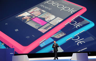 10月26日,在英國倫敦舉行的新聞發(fā)布會上,諾基亞總裁兼首席執(zhí)行官斯蒂芬·埃洛普手握諾基亞新款Lumia智能手機(jī)發(fā)表講話。當(dāng)天,諾基亞首次發(fā)布應(yīng)用微軟視窗系統(tǒng)的智能手機(jī)。新發(fā)布的兩款智能機(jī)將于圣誕節(jié)前登陸歐洲各大主要手機(jī)市場。