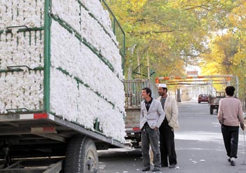 眼下正是新疆棉花收購高峰期,雖然豐收已成定局,但由于市場(chǎng)疲軟,棉價(jià)低迷,棉農(nóng)普遍增產(chǎn)不增收。在此情形下,位于塔里木盆地的阿瓦提縣和駐地一些涉農(nóng)機(jī)構(gòu)卻設(shè)置關(guān)卡,向出外售棉的農(nóng)民收費(fèi),《經(jīng)濟(jì)參考報(bào)》記者暗訪發(fā)現(xiàn),在其中一條短短200米的售棉路上,要運(yùn)一車棉花過去,農(nóng)民要繳費(fèi)兩次,少則一二百元,多則三四百元。